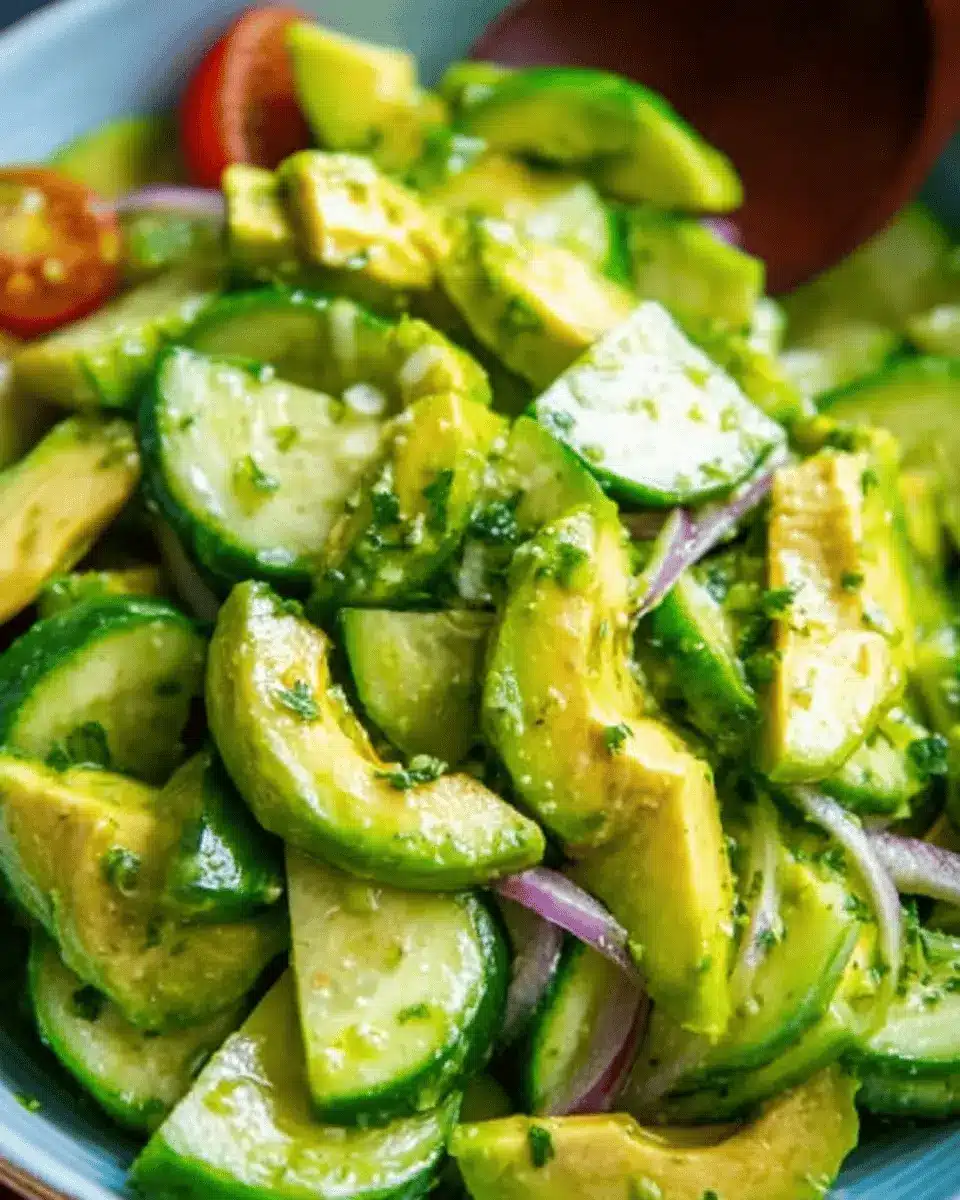 Absolutely! You can prepare the Avocado Cucumber Salad Recipe a few hours in advance. Just keep the dressing separate until you’re ready to serve it to prevent the avocado from browning and the cucumbers from becoming soggy. Consider storing the cucumber and avocado in an airtight container in the fridge for maximum freshness.