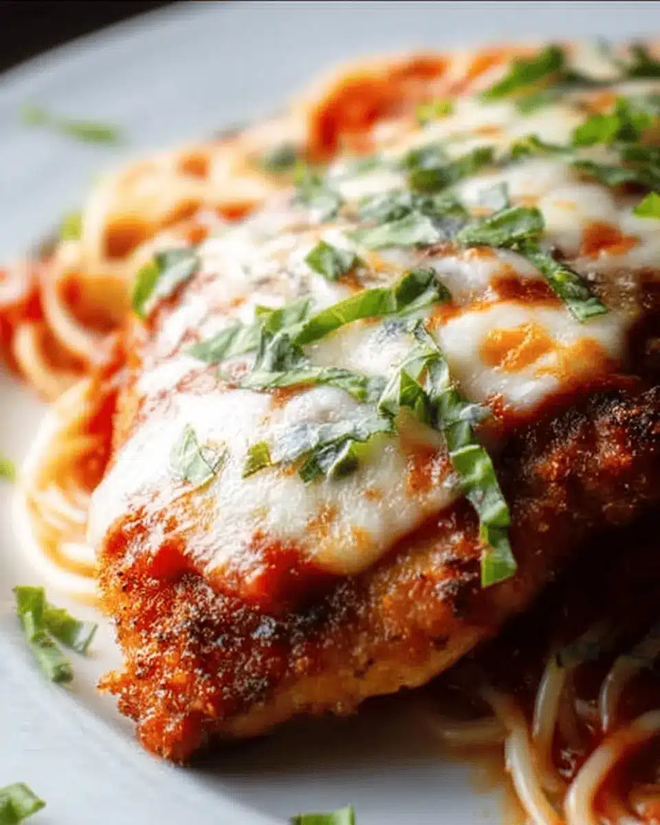 No problem! If you’re looking for gluten-free options, substitute regular breadcrumbs with gluten-free ones. For a lighter option, you can use baked chicken instead of breaded. Additionally, for those avoiding dairy, look for plant-based cheese alternatives or leave the cheese out entirely. There are plenty of ways to customize this classic to fit your needs!