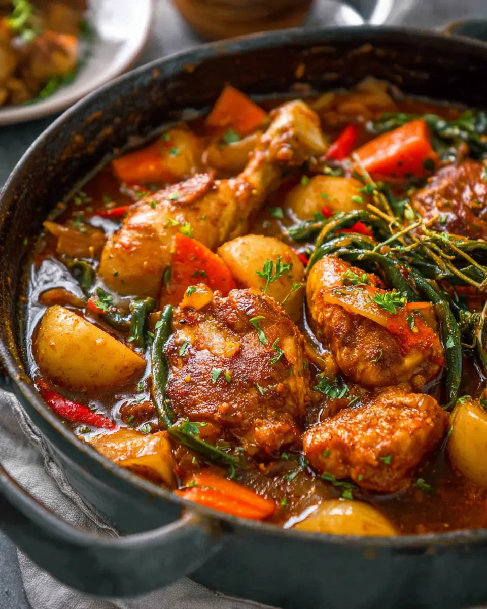 For a luxuriously rich chicken stew, consider making it creamy! Stir in a splash of heavy cream or coconut milk in the last few minutes of cooking for that silky texture. The added creaminess balances the savory flavors and makes every bite comforting. Top with fresh herbs for a pop of color and freshness. It’s the perfect variation for a cozy evening!