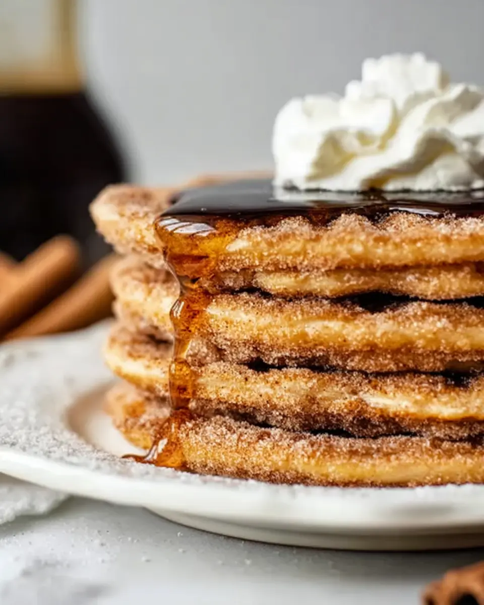 Churro pancakes are wonderfully versatile! For a fun twist, stack them high and drizzle warm chocolate sauce over the top, then sprinkle with a touch of extra cinnamon sugar. Consider layering some sliced bananas or strawberries between the pancakes for added sweetness and freshness. You can also dip them in condensed milk for that irresistible, creamy finish.