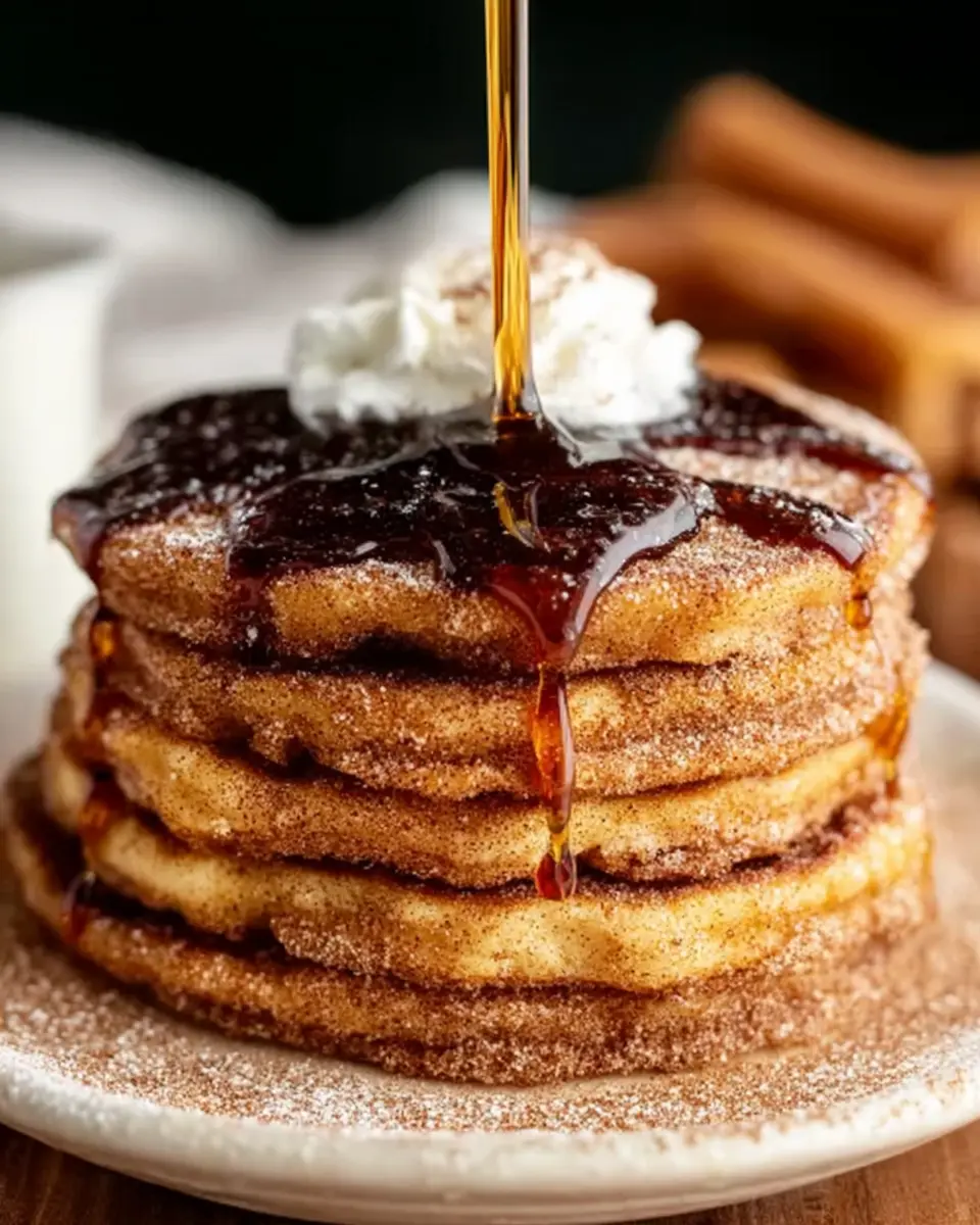 These churro pancakes are an incredible way to elevate your morning routine. The golden, fluffy stacks are dusted with a crunchy glaze of cinnamon sugar, making each bite a sweet, aromatic adventure. Whether you’re treating yourself on a relaxed Sunday morning or surprising friends during a brunch gathering, churro pancakes are sure to impress.