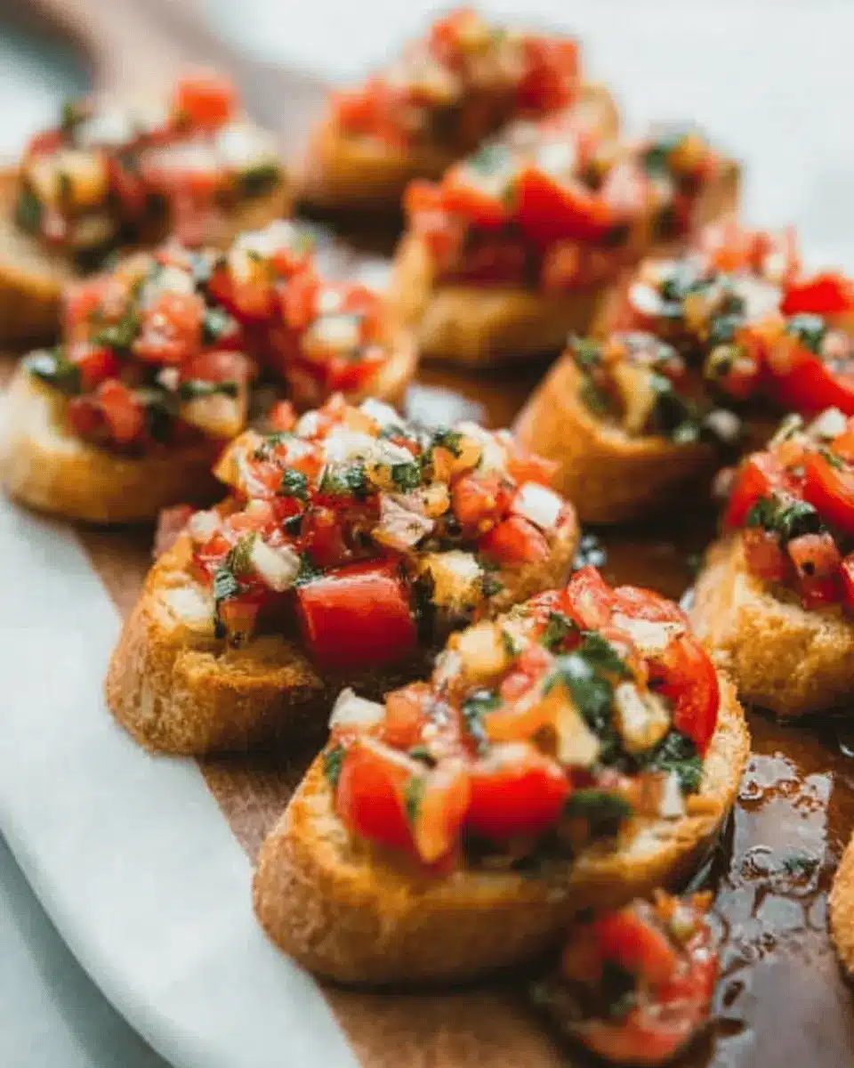 When making classic bruschetta, the tomatoes are the star of the show! Opt for ripe, in-season Roma tomatoes, known for their meaty texture and lower moisture content, which means your bruschetta won’t get soggy. For extra flavor, look for organic tomatoes that are locally grown. You can also experiment with heirloom varieties for a more vibrant taste!