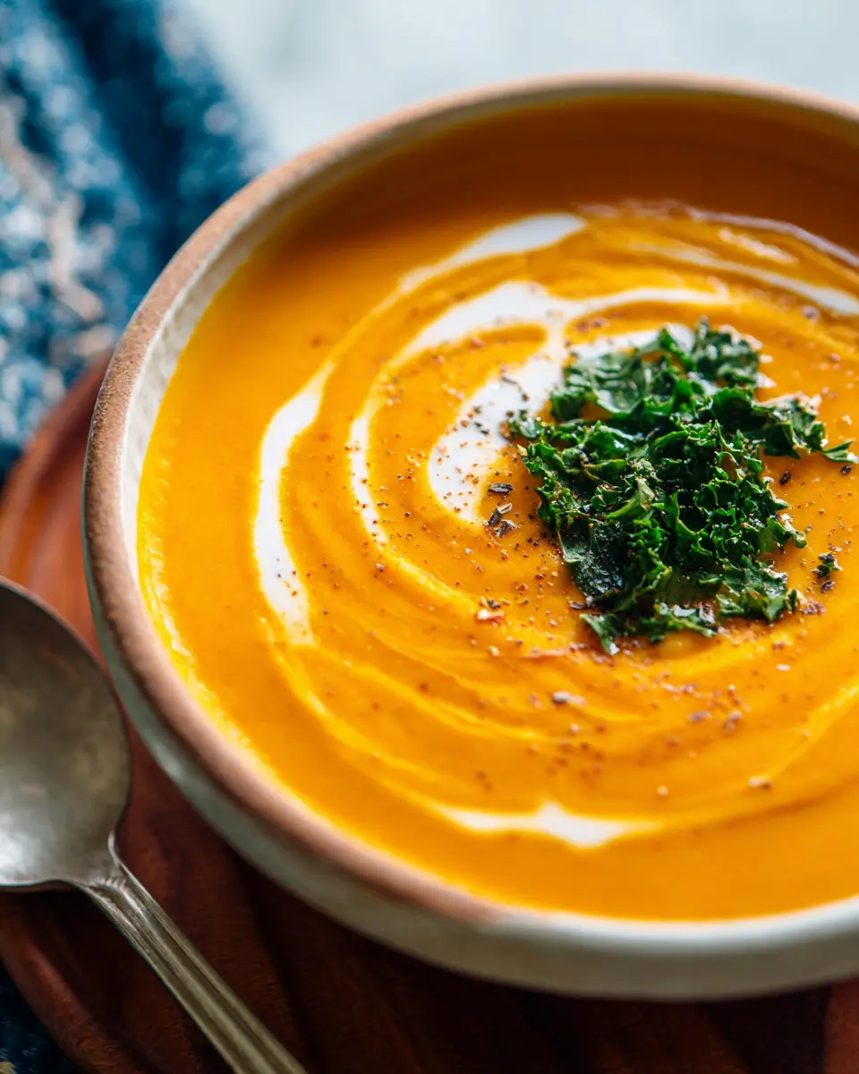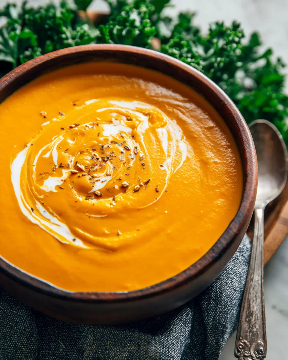 For those chilly nights, incorporate curry powder into your soup to create a comforting curried carrot variation. Add 1 to 2 teaspoons when you cook the garlic and spices. This creamy roasted carrot soup will envelop you in warmth and a delightful spice that makes each spoonful a pleasure.