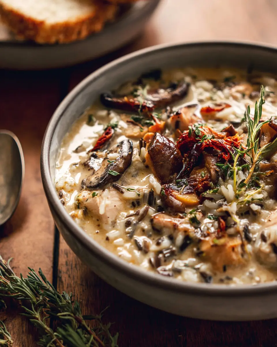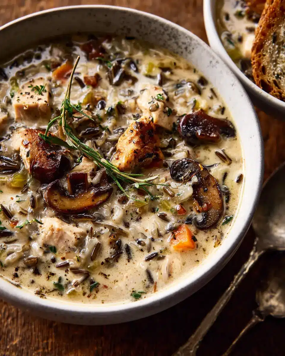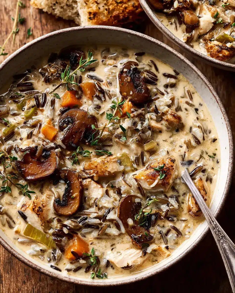 Creamy Wild Rice Chicken Soup with Roasted Mushrooms