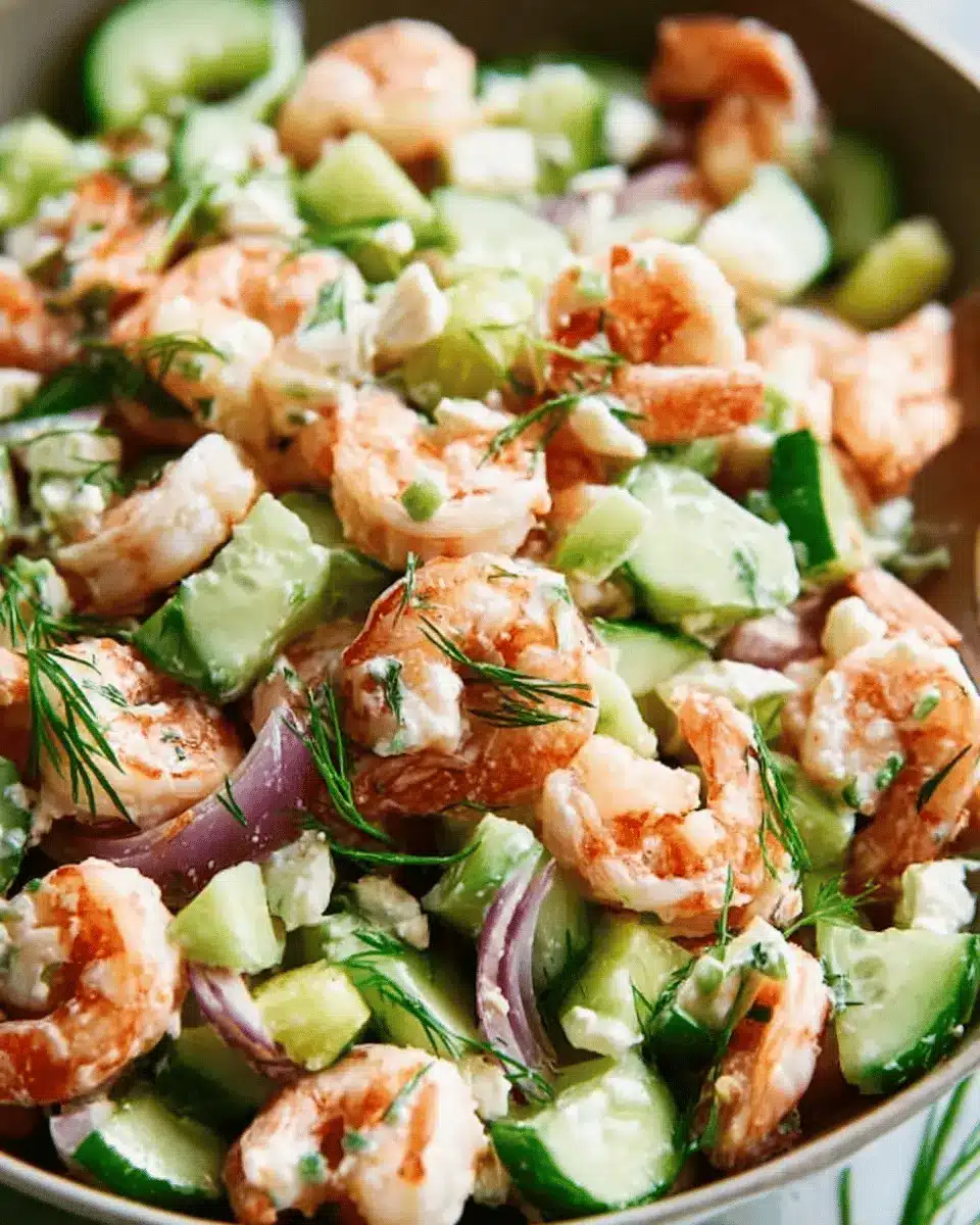 Thinking about a light dinner? The Cucumber Shrimp Salad shines as a stand-alone dish, especially on warmer nights. Serve it in chilled bowls and maybe accompany it with a refreshing sparkling water. Don’t forget to garnish with extra dill or a slice of lime for that extra zing! A light dessert, like sorbet, can wrap up your meal beautifully. Whether it’s a casual weeknight or a small gathering, this salad delivers effortless charm.