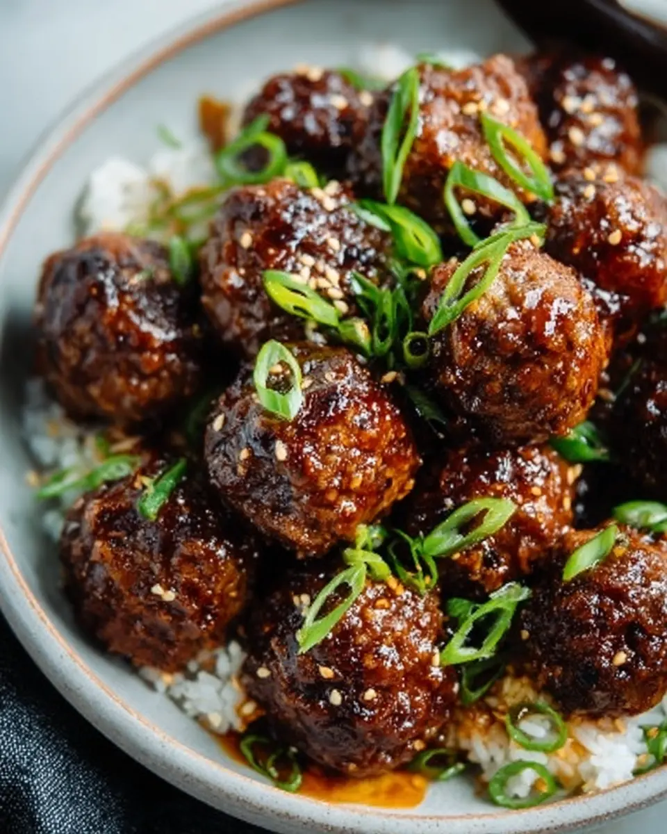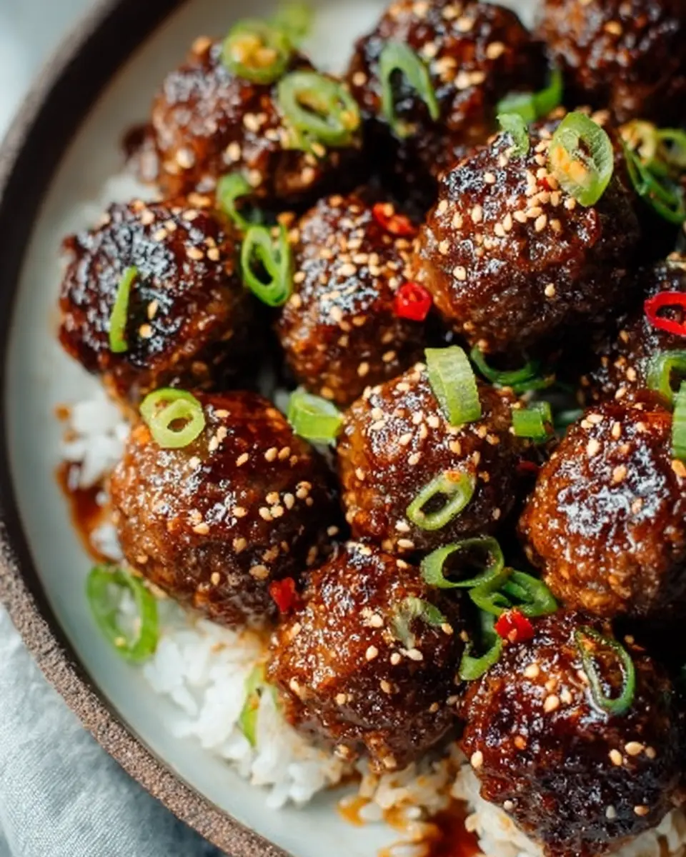 Garnish your dish with sliced green onions, and there you have it! A delectable plate of easy Mongolian meatballs, perfect served over steamed rice, ready to impress yourself or anyone else around the dinner table. Enjoy!