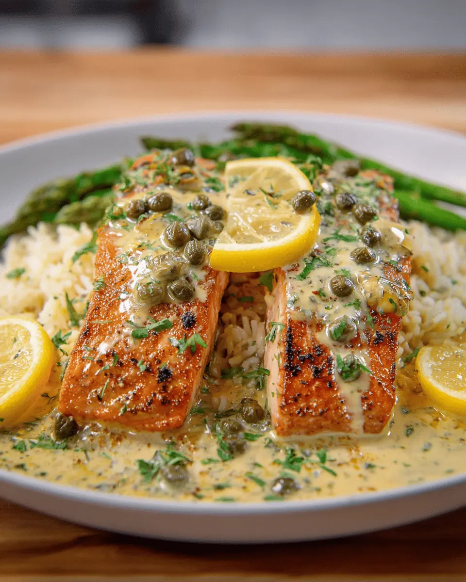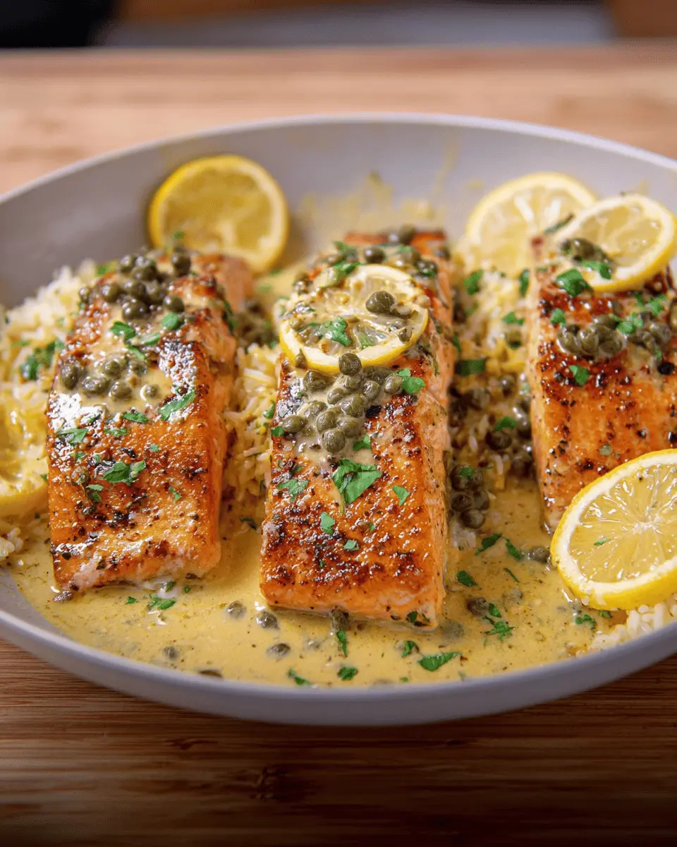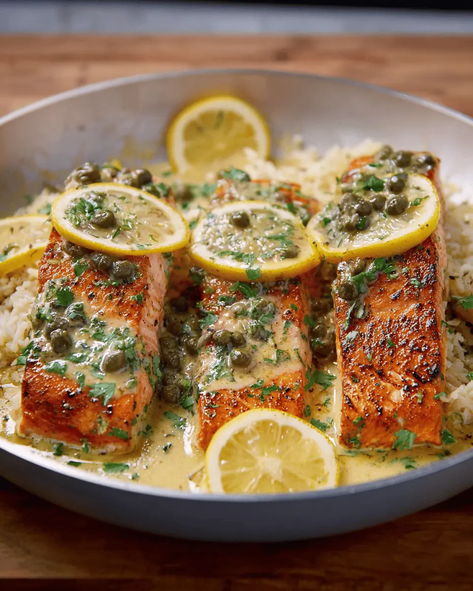 Easy One Pan Creamy Lemon Caper Butter Salmon