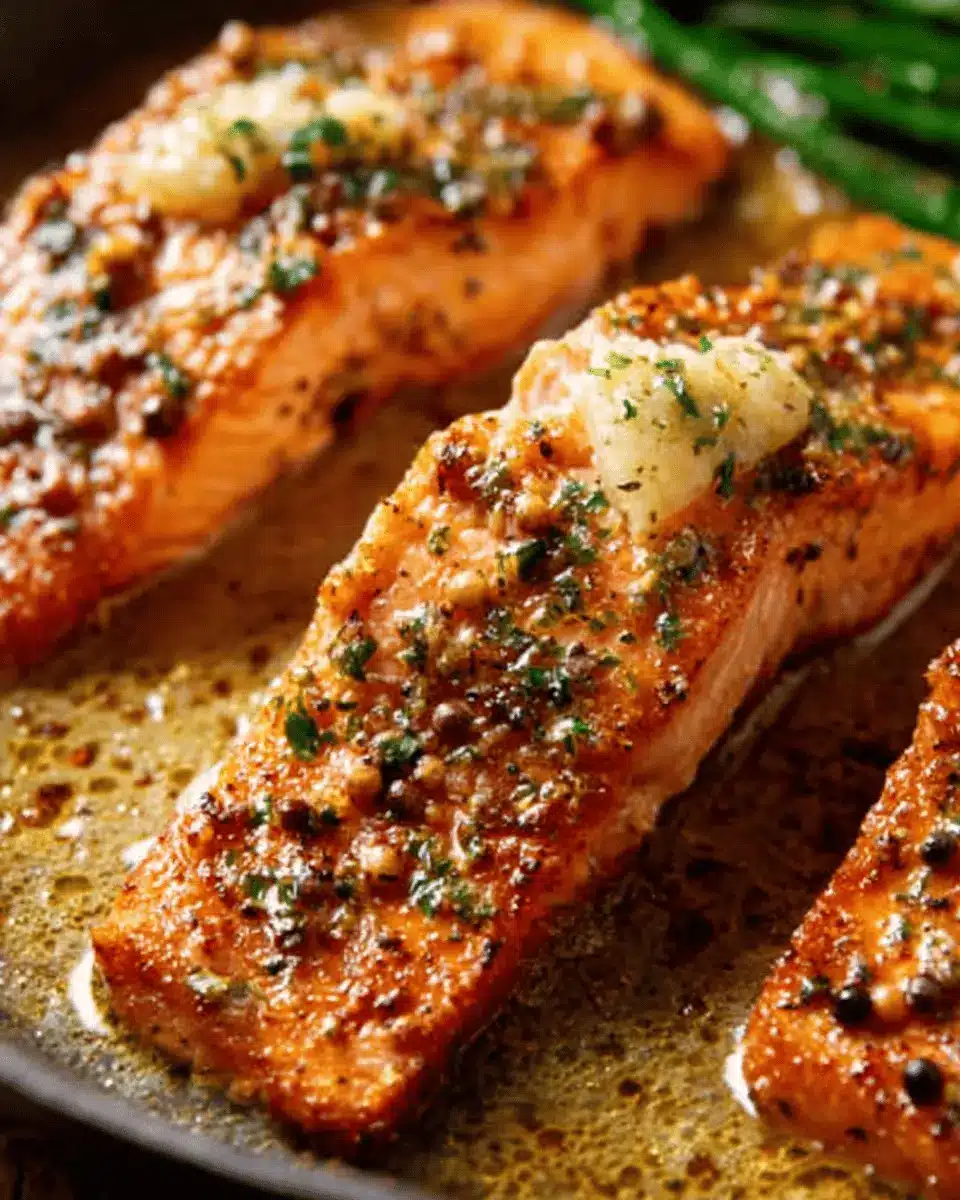 This salmon is rich and flavorful, so pairing it with light sides is a great idea. Consider serving it alongside a vibrant Cauliflower Mash or a fresh leafy green salad tossed with a simple vinaigrette. Roasted asparagus or steamed broccoli also work beautifully, adding a nice crunch and color to your plate. For a charming finish, a slice of crusty bread for sopping up that leftover garlic butter is a must!