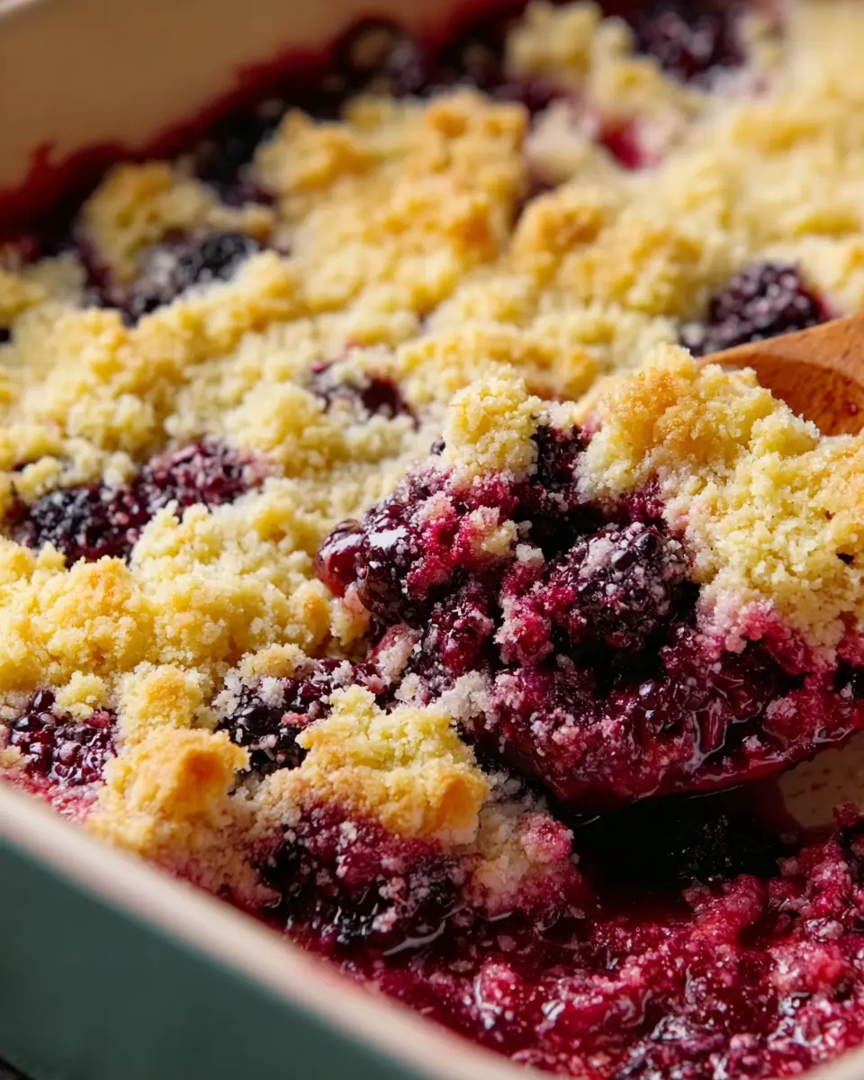 In conclusion, Grammy's Easy Blackberry Cobbler is a delightful dish that transports you back to simpler times with every bite. With its sweet, juicy blackberries and a buttery topping, this easy-to-make dessert is perfect for any occasion. Share it with friends or enjoy it solo; either way, it’s a treat you won’t forget!
