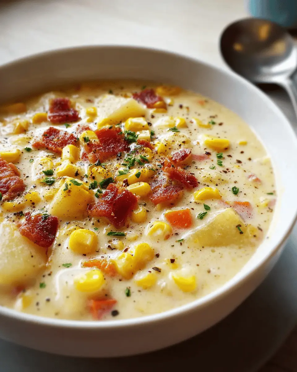 In summary, Grandma's Corn Chowder is more than just a comforting dish; it’s a warm memory, perfect for cozy dinners or casual gatherings. This easy-to-follow recipe is sure to become a family favorite like it did for us. Enjoy sharing it with loved ones and savoring each delicious bowl!