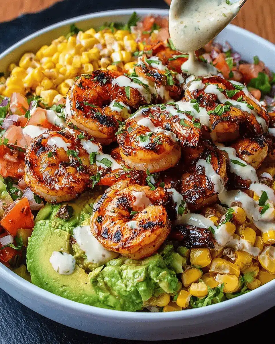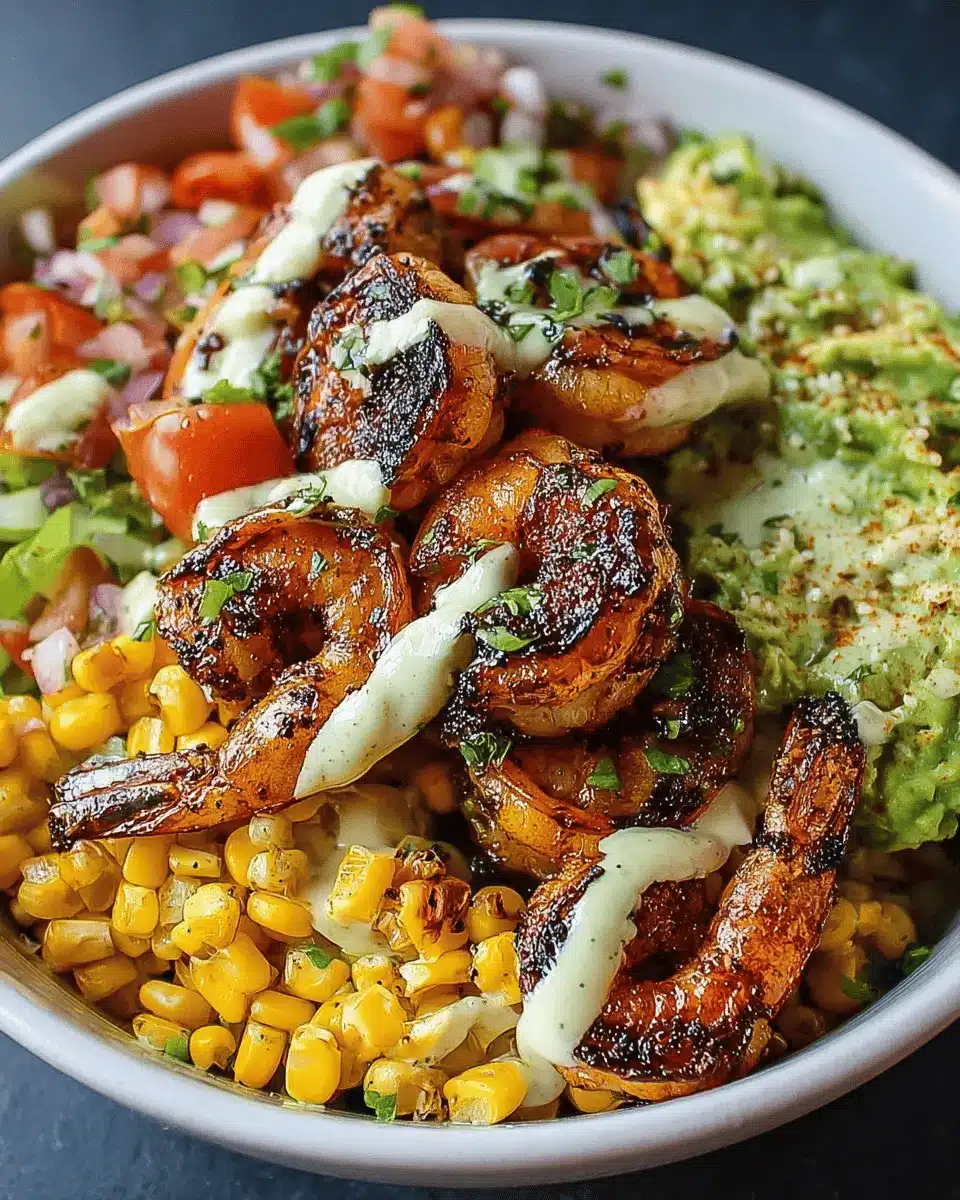 Finally, it’s time to assemble your masterpiece! Start by dividing the corn salsa between two bowls. Top it off with those beautifully grilled shrimp and slices of avocado (or mash it for extra creaminess). Drizzle the creamy garlic sauce over the shrimp, and if desired, garnish with sesame seeds and chopped green onions. Each bite is a delight, combining savory shrimp, fresh salsa, and a creamy finish that’s hard to beat!