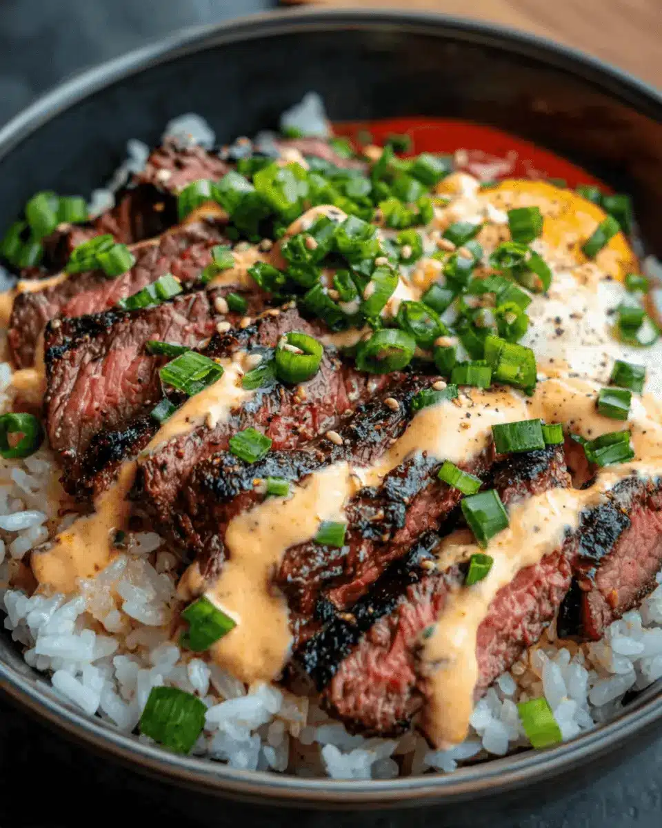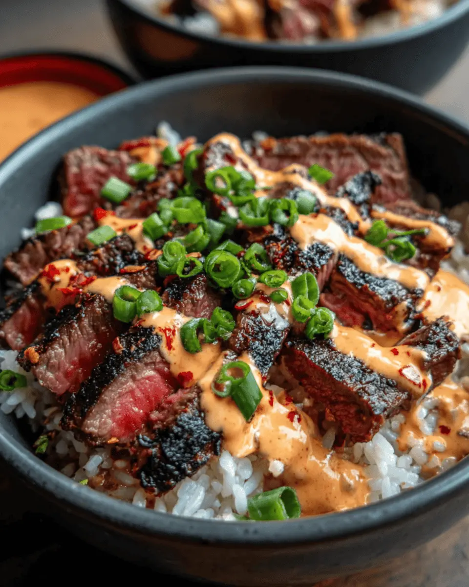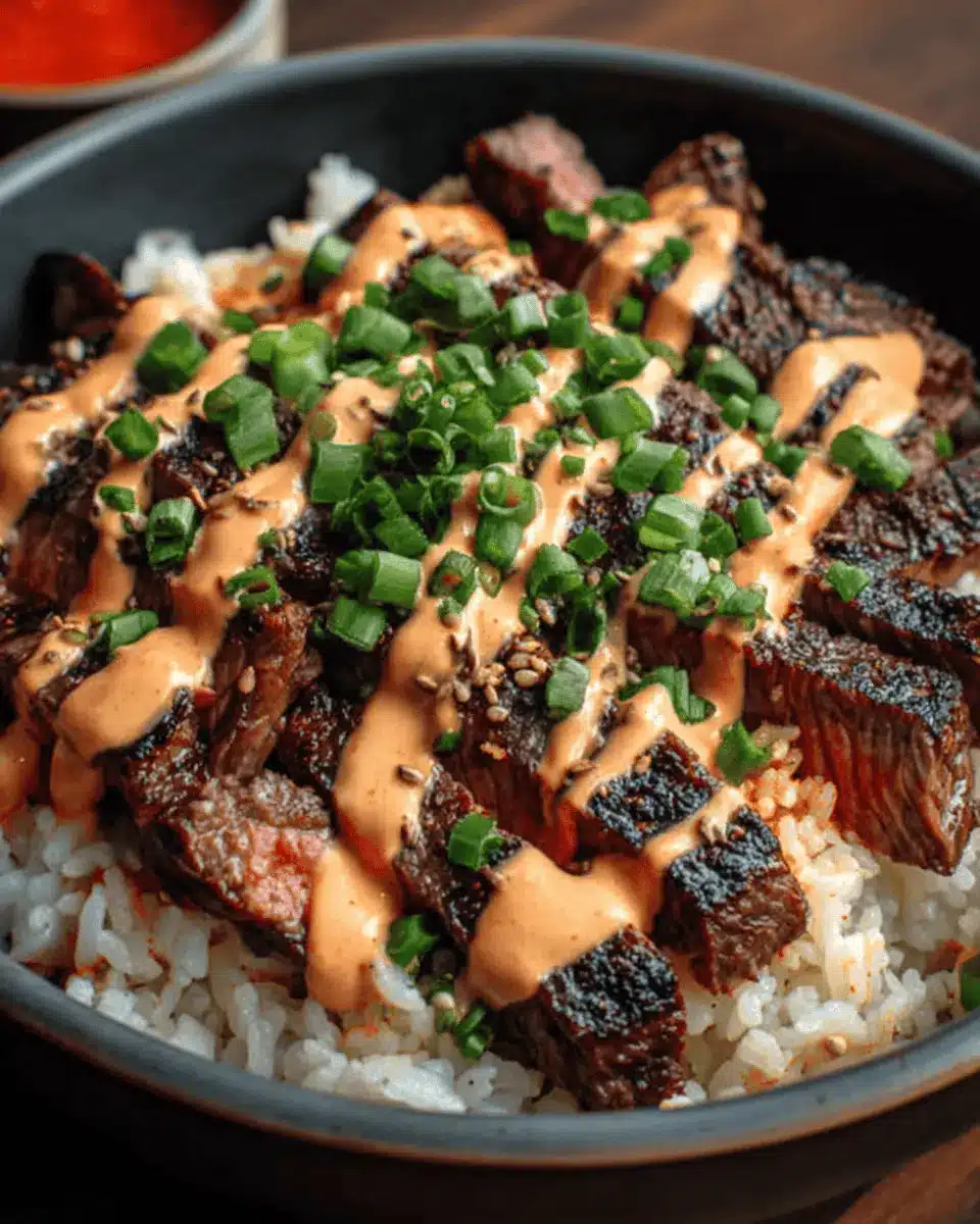 Korean BBQ Steak Rice Bowls with Spicy Cream Sauce