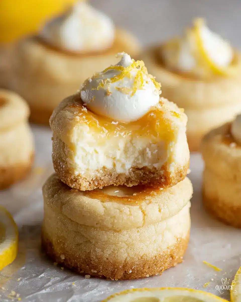 Enhance your lemon cheesecake cookies by adding a fresh fruit topping. Consider strawberries, blueberries, or raspberries for a delightful burst of color and flavor. Simply press a piece of your favorite fruit gently into the center of each cookie before baking. Not only does this provide a gorgeous display, but it also adds a juicy sweetness that pairs perfectly with the creamy lemon filling. If you're feeling adventurous, try a glaze made from lemon juice and powdered sugar drizzled over the top for an extra zing!