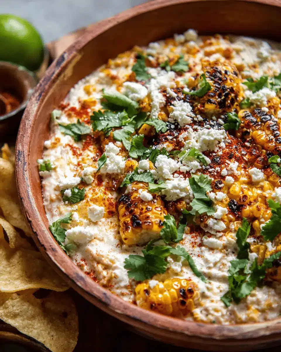 For those who love a fiery flair, a spicy Mexican Street Corn Dip is sure to ignite your taste buds! Increase the cayenne pepper per your spice tolerance, or add finely chopped jalapeños for a fresh, vibrant heat. Also, consider a splash of hot sauce or a pinch of crushed red pepper flakes atop the finished dip. Pair it with tortilla chips, and you have a crowd-pleaser that will definitely be the star of the gathering!