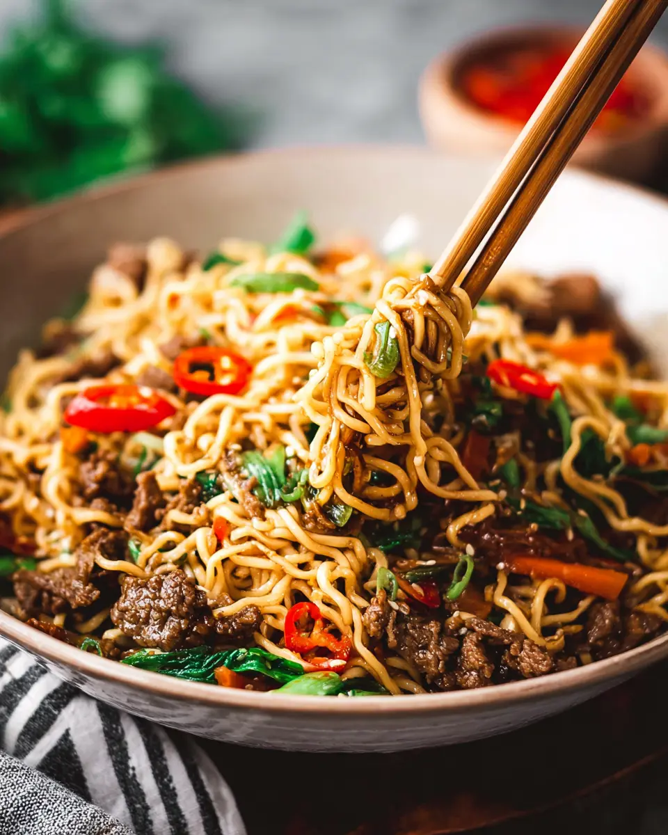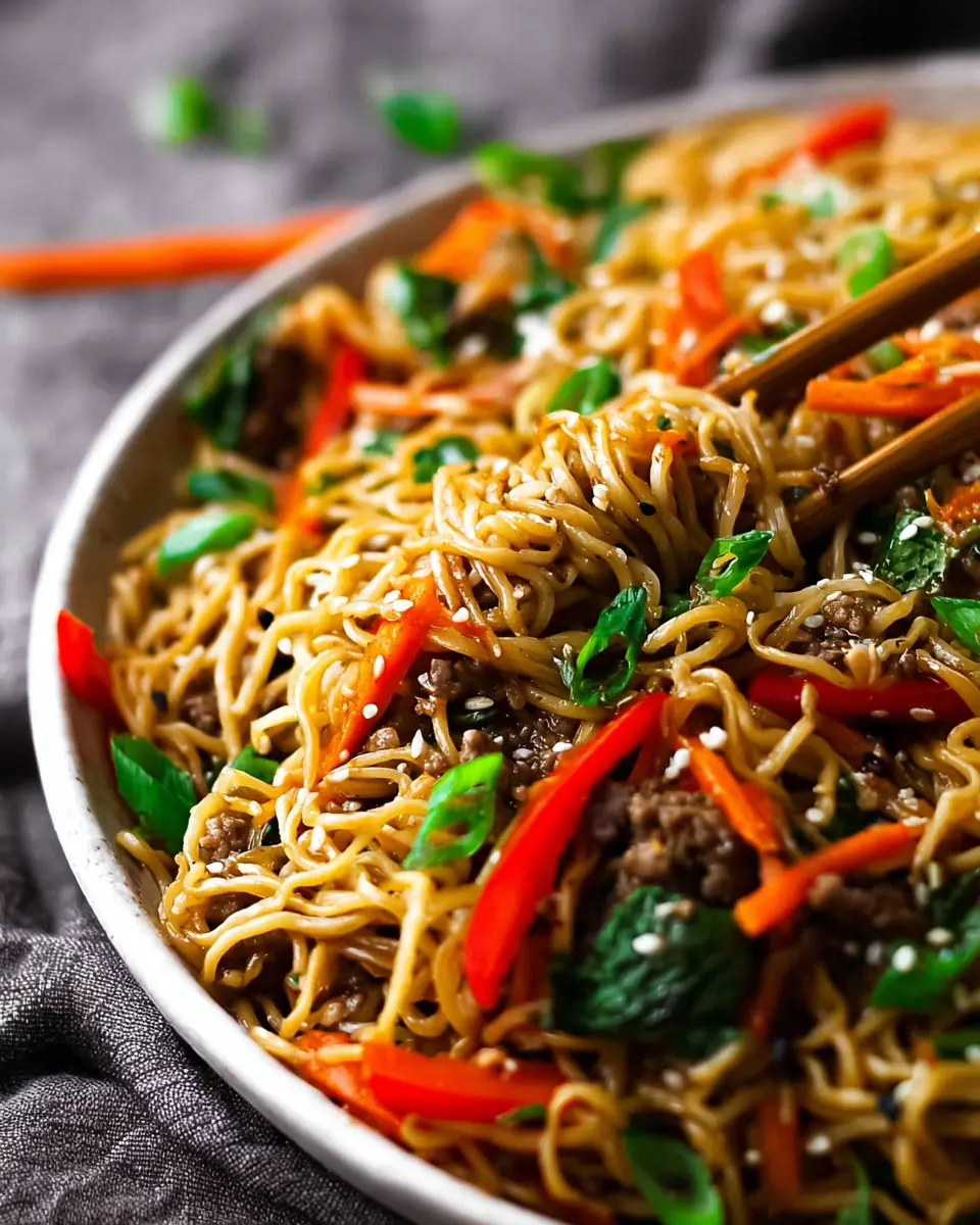 Flexibility is key when creating delicious Mongolian Noodles! If you're looking for a healthier twist, consider swapping out the ground beef for lean turkey or chicken. For a vegetarian version, try using tofu or tempeh instead. If gluten is a concern, opt for gluten-free ramen noodles or even spiralized zucchini for a low-carb option. Incorporating seasonal vegetables like bok choy or spinach can also enhance nutrition while adding color and flavor. Check out this guide on veggie substitutions for more ideas!