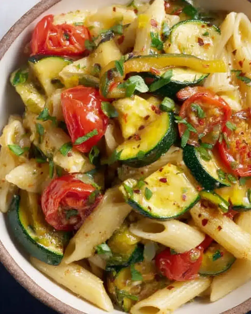 Enjoy preparing this vibrant pasta dish that’s not only quick to make but also brings fresh, seasonal veggies right to your table!