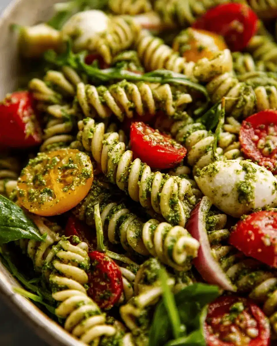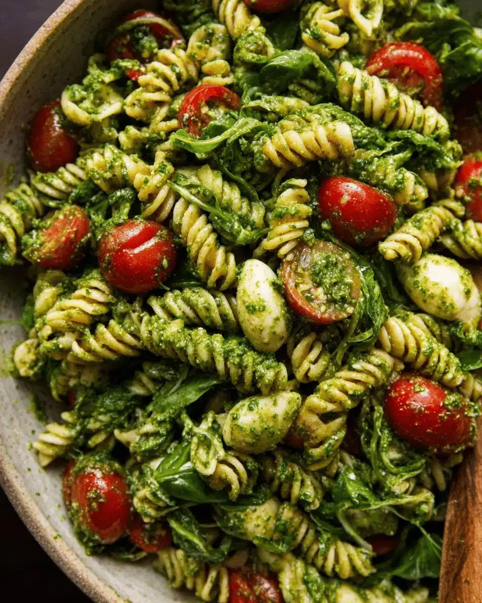 To create an eye-catching presentation, use a large, shallow serving bowl to showcase the vibrant colors of your pesto pasta salad. Before serving, garnish with a sprinkle of fresh basil leaves and some extra parmesan for that restaurant-style touch. For added texture and flavor, consider topping with toasted pine nuts or walnuts. These simple tricks will not only enhance the dish’s appeal but also provide an inviting atmosphere for your guests!