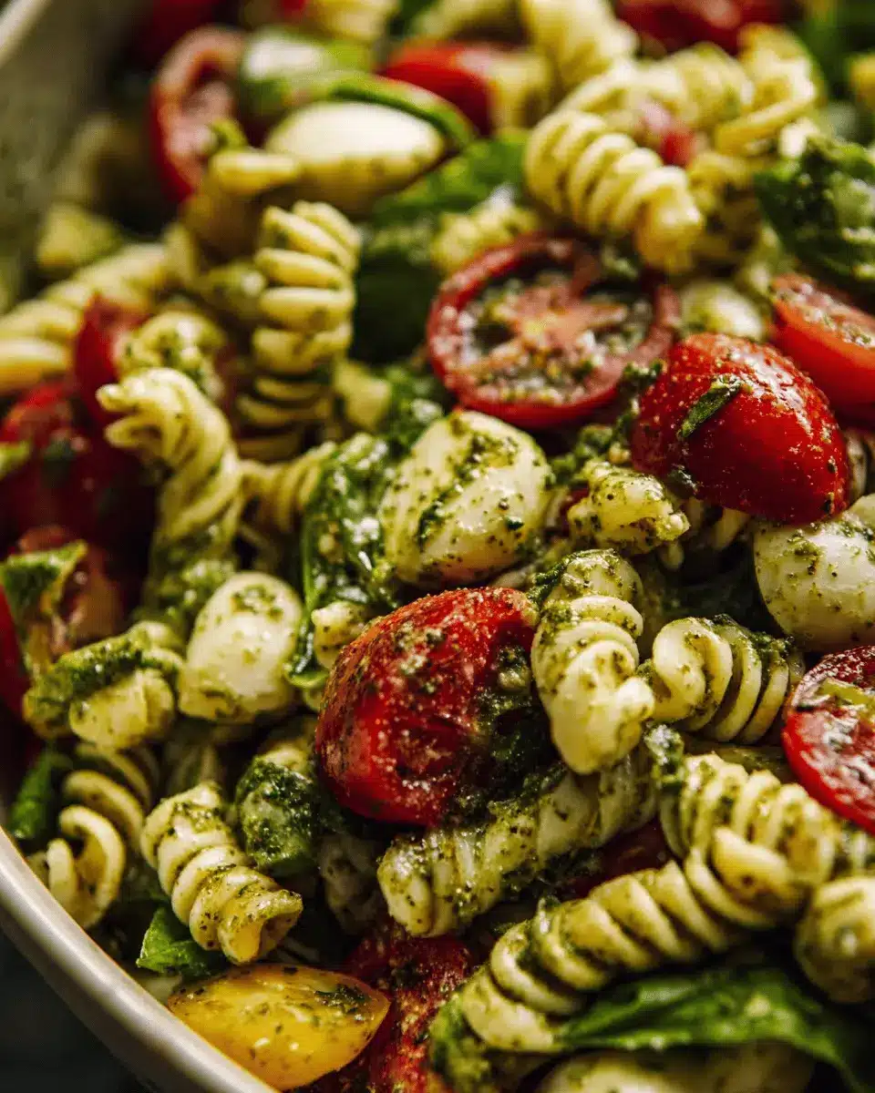 This delightful pesto pasta salad shines on its own but pairs beautifully with various sides. Consider serving it alongside grilled chicken or turkey bacon for a heartier meal. For a lighter touch, mix it with a fresh garden salad or some roasted vegetables. A zesty lemon vinaigrette can elevate the flavors even further, complementing the herbal notes of the pesto.