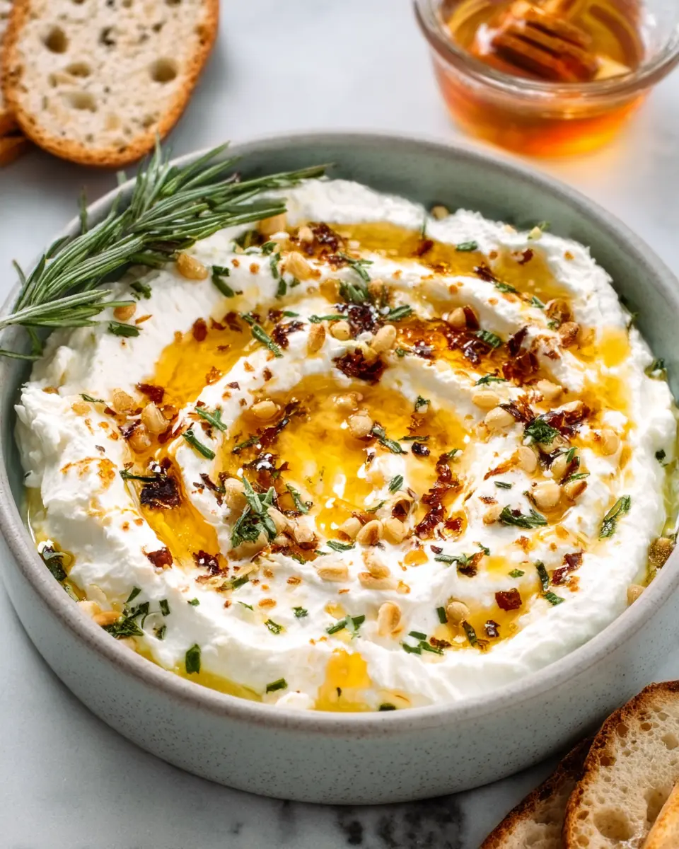 Absolutely! This dip can be made up to a day in advance. Just whip it up, store it in an airtight container in the refrigerator, and add the hot honey and garnishes just before serving. By allowing the flavors to meld together overnight, you’ll find it even more delicious when it's time to enjoy it.