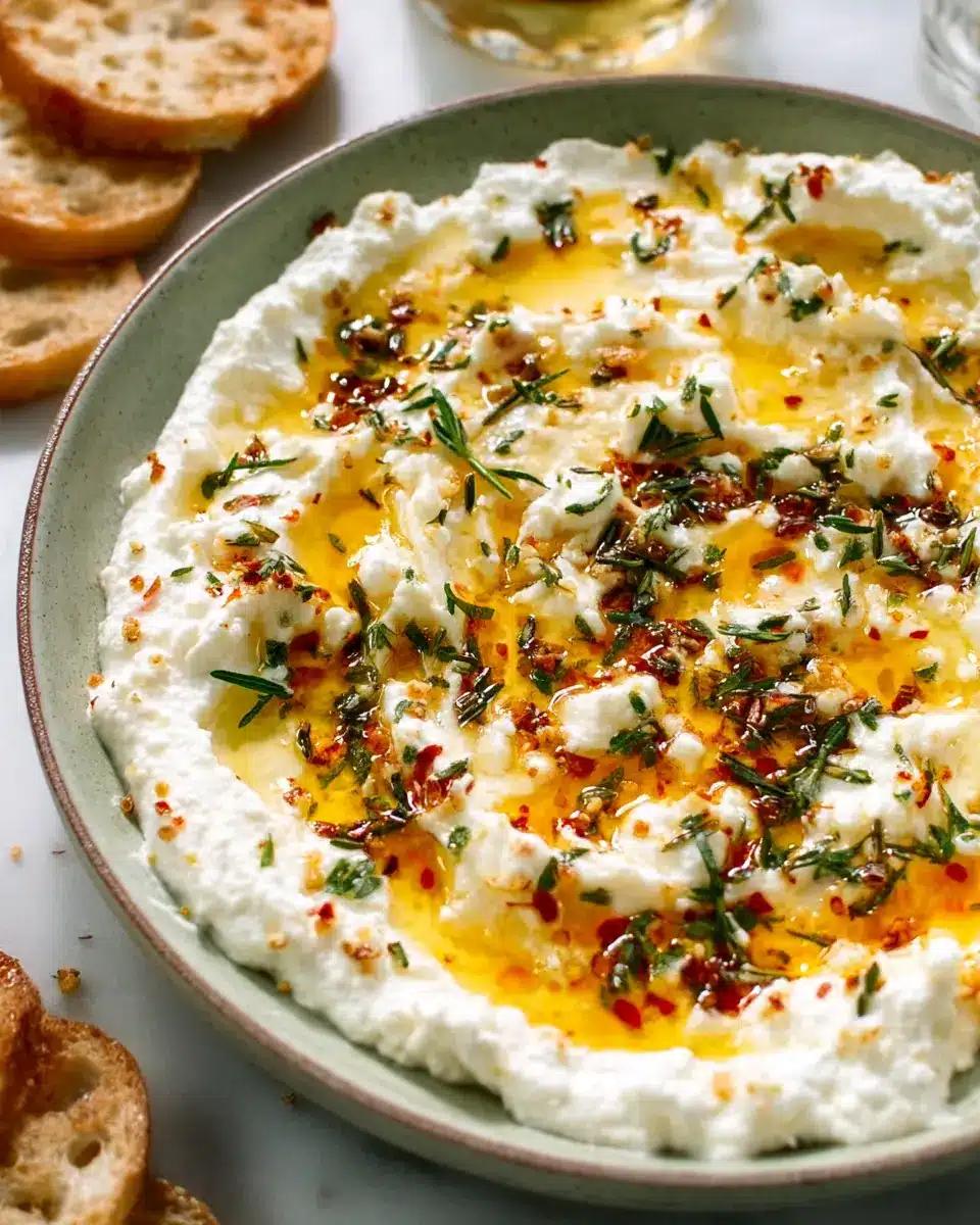 Quick Whipped Ricotta Dip with Hot Honey Appetizer