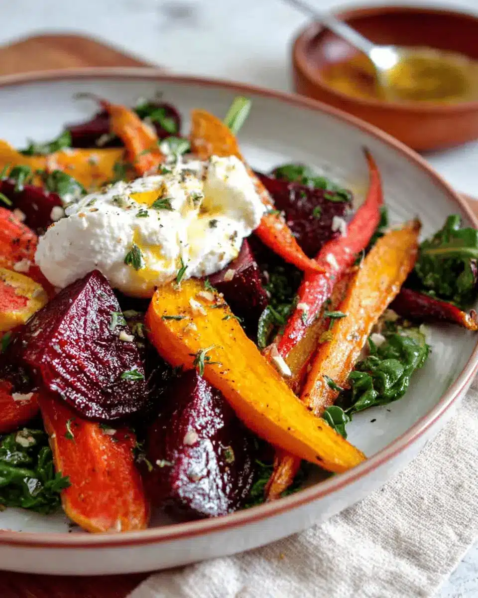 In summary, this roasted beets and carrots salad offers a delightful blend of flavors and textures that is both nutritious and visually appealing. Perfect as a side dish or a light meal, it pairs wonderfully with grilled proteins like chicken or turkey. Enjoy!