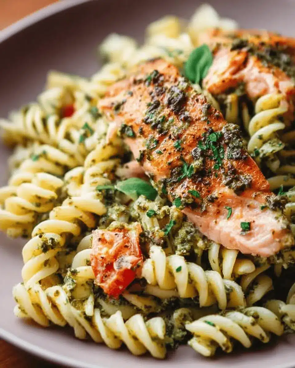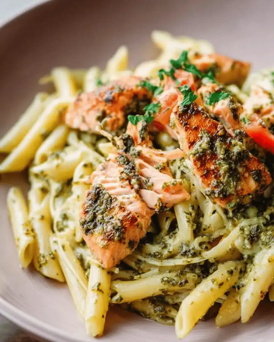 To elevate your salmon pesto pasta experience, consider pairing it with light side dishes. A crisp green salad with a zesty lemon vinaigrette complements the richness of the dish beautifully. Alternatively, roasted vegetables like asparagus or broccoli add texture and color, making your meal visually appealing. If you’re in the mood for something comforting, try serving it with garlic bread—the perfect vehicle for any leftover pesto sauce!