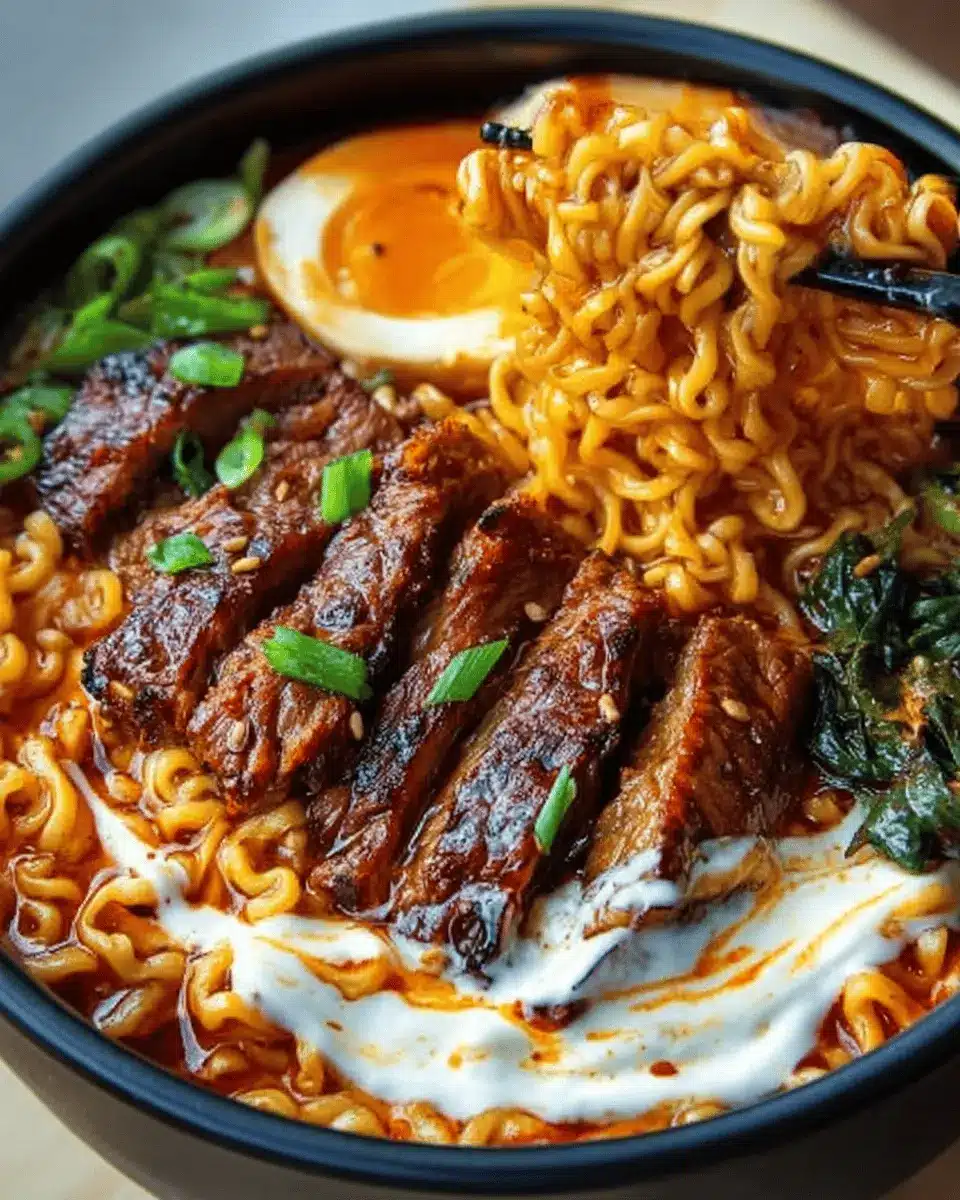 Spicy Korean Ramen with Grilled Beef & Creamy Sauce