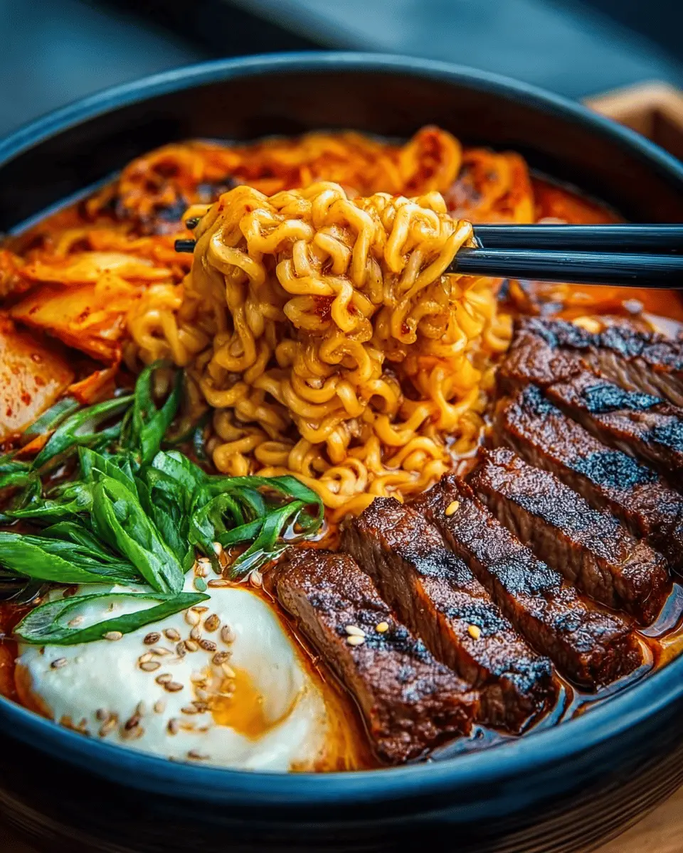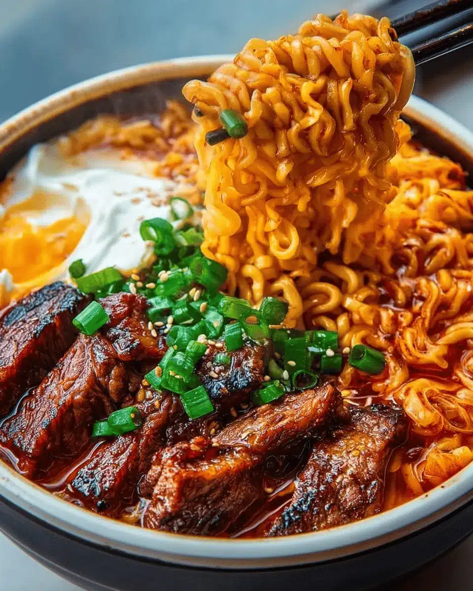 In summary, this spicy Korean ramen with grilled beef and creamy sauce is a fantastic choice for anyone craving something bold and delicious. It’s easy to prepare, perfect for busy weeknights, and promises an explosion of flavor in every bite. Give it a try—you won’t be disappointed!