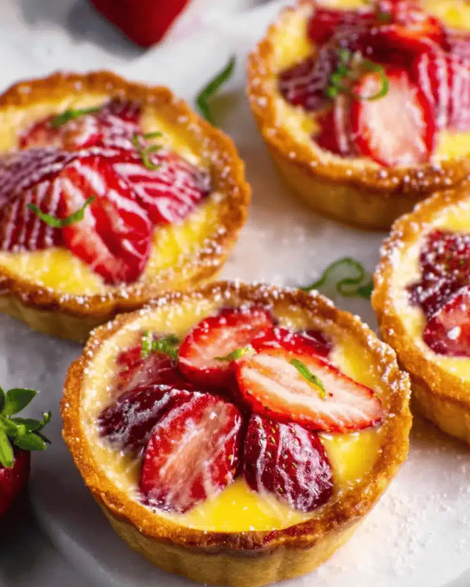 In conclusion, strawberry honey custard tarts are a delightful treat that effortlessly combines creamy yogurt custard, fresh strawberries, and tangy lemon curd. Perfect for gatherings or a cozy night in, these tarts offer a burst of summer flavor in every bite. Treat yourself to this exquisite dessert today!