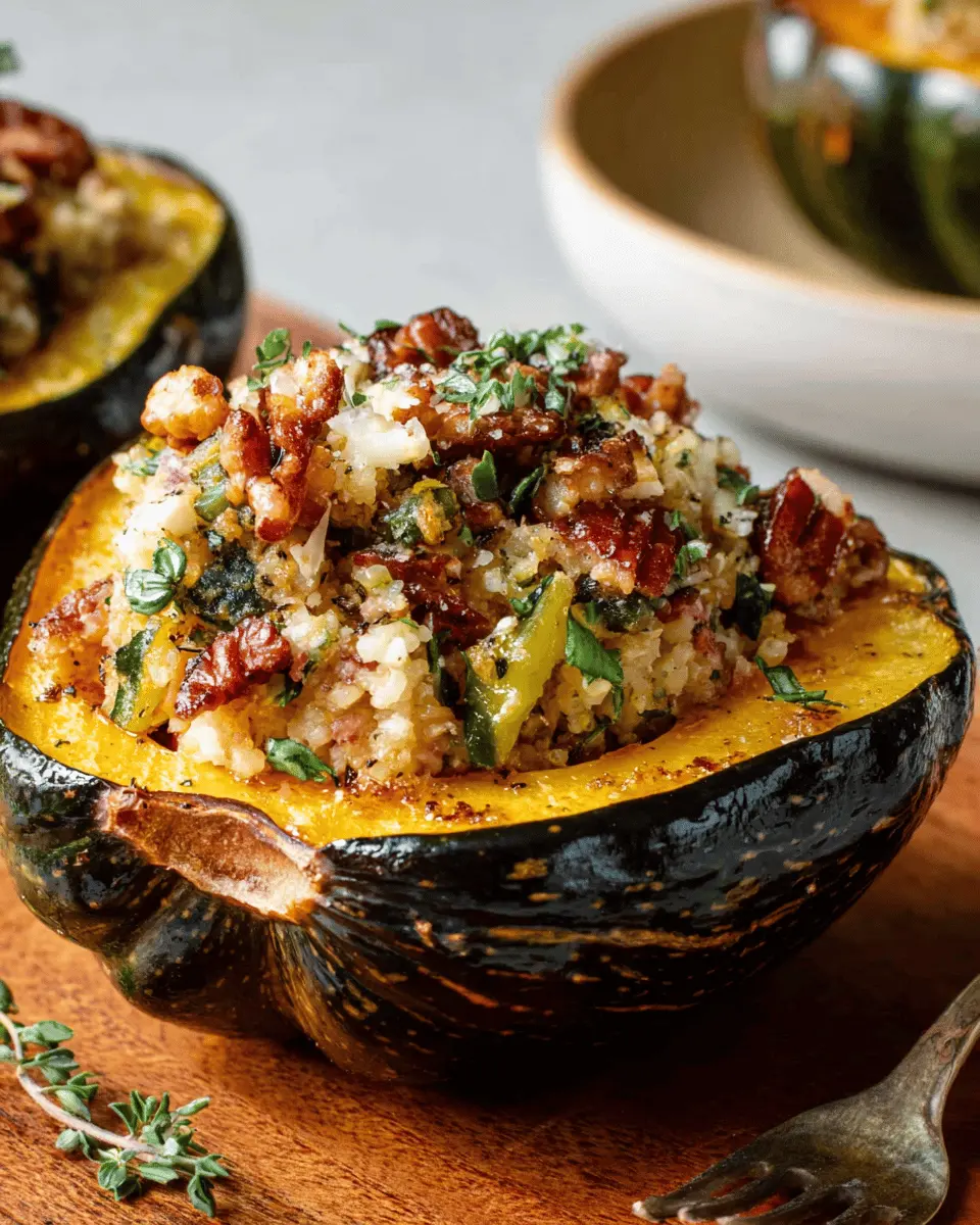 To elevate your stuffed acorn squash, consider pairing it with a robust side like roasted Brussels sprouts or a tangy mixed greens salad drizzled with balsamic vinaigrette. For a heartier touch, serve it alongside turkey bacon or chicken ham—both add an incredible depth of flavor. You could also complement the dish with a warm, crusty bread for a comforting finish.
