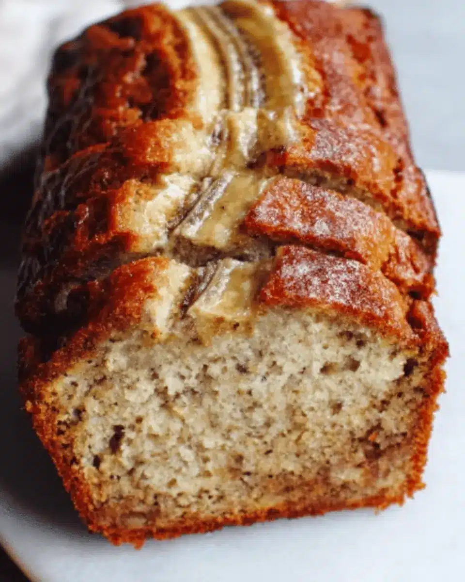 Honey Vanilla Banana Bread with a Peanut Butter Glaze